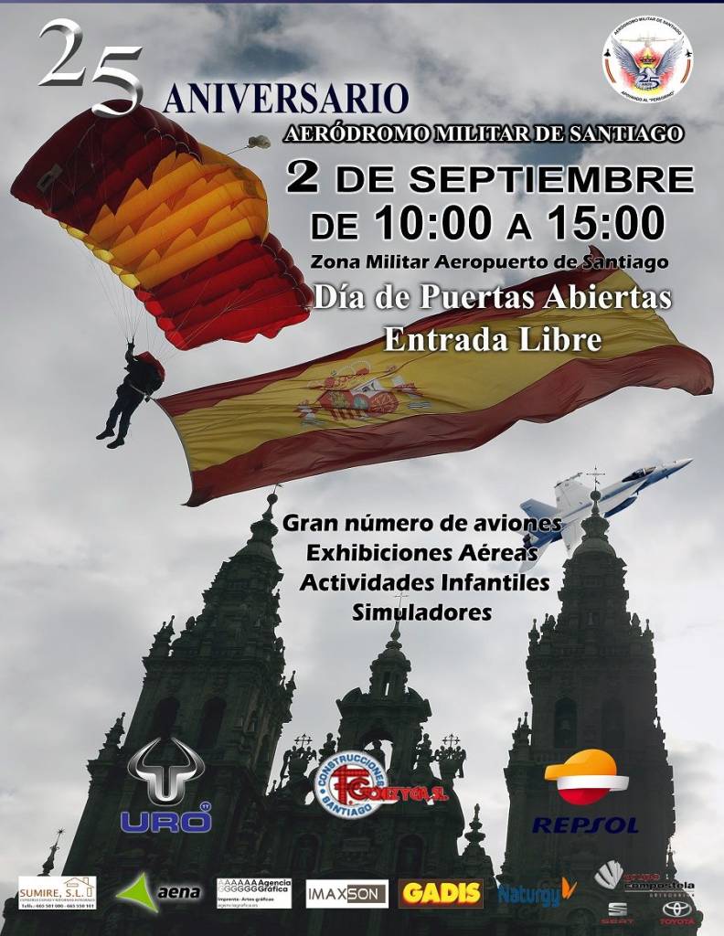 Con motivo del 25 Aniversario del Aeródromo Militar de Santiago, el domingo 2 de septiembre habrá una jornada de Puertas Abiertas en la Zona Militar del Aeropuerto de Santiago, con diversas actividades para el público de todas las edades.